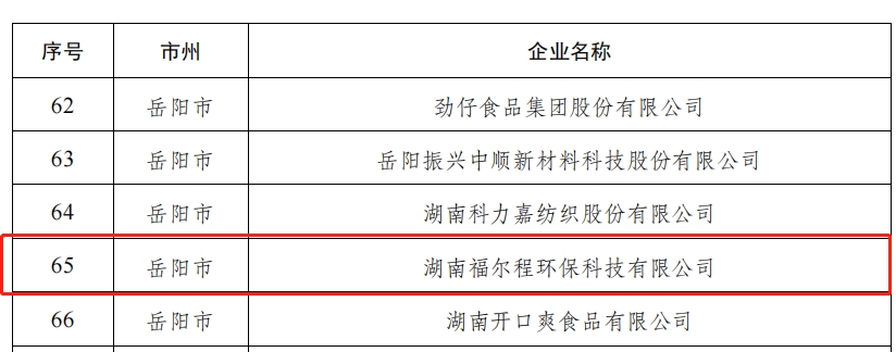喜报|恭喜福尔程环保入选2023 年度“湖湘精品”中小企业品牌能力提升试点企业